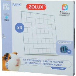 Kit de grilles d'extension pour l'habitat Neopark cochon d'inde, référence 275009. - Composé de: 4 grilles + clips coloris bleu - Modulable (suggestion de montage sur l'emballage). - Approuvé par un vétérinaire.
