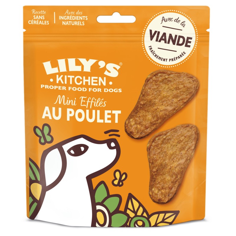 De tendres friandises dorées, savoureuses et riches en viande et abats de qualité. Si votre chien pouvait lire, il s’en lécherait déjà les babines ! Ces friandises pour chiens sans céréales sont élaborées à partir de poulet fraîchement préparé et lentement cuites au four, pour obtenir une texture facile à mâcher. Riches en ingrédients naturels, elles sont idéales pour l’éducation, comme encas ou simplement pour leur faire plaisir (on n’est pas obligé d’avoir une raison à chaque fois !). Avec de la viande et des abats fraîchement préparés, Préparé avec des ingrédients naturels, Recette sans céréales*, Pour les chiens adultes à partir de 4 mois, Jusqu’à 5 friandises par jour. Respectez les quantités recommandées. *Cette recette est préparée dans une usine qui utilise des céréales. Elle peut donc en contenir quelques traces.