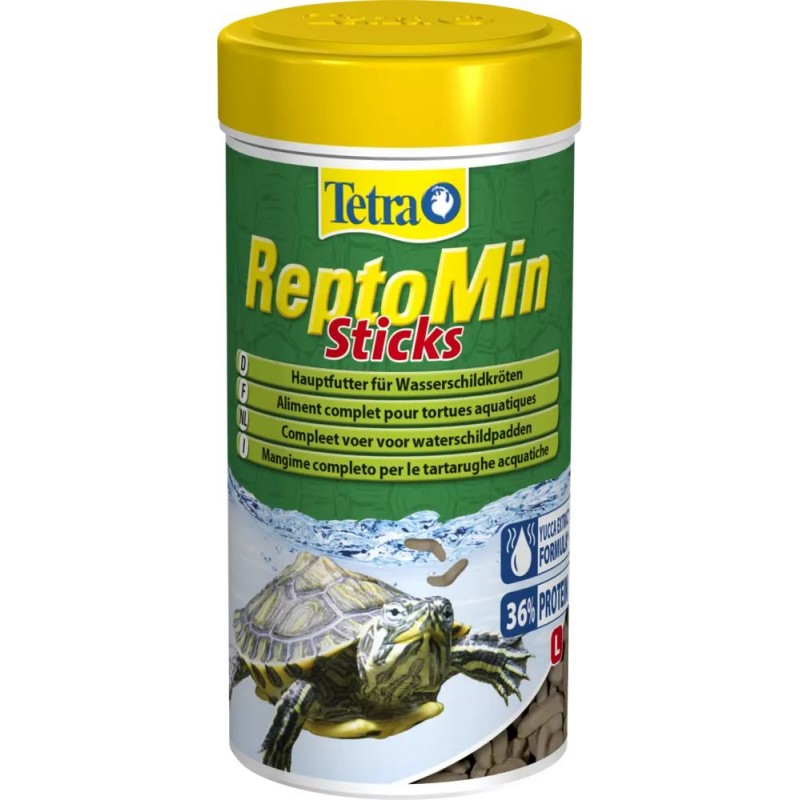 Reptomin est une alimentation complète et équilibrée qui se présente sous forme de mini-sticks. Il est spécialement adapté aux besoins alimentaires de vos tortues d’eau de grande taille. Il contient des substances nutritives essentielles, des protéines et des substances végétales et minérales et il est enrichi en calcium pour une meilleure croissance chez vos compagnons! Reptomin contribue à la formation de la carapace et des os de vos tortues aquatiques. Il est enrichi avec la formule BioActive®, pour des tortues robustes et en bonne santé!