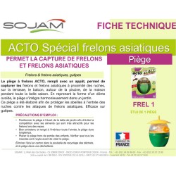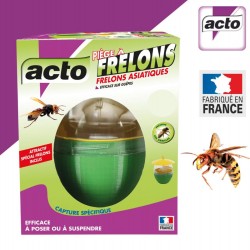 • Piège spécial frelons asiatiques : entrée latérale spécifique au vol du frelon asiatique + goulet. • Les frelons attirés dans le piège par l'attractif (vendu séparément) se retrouvent piégés à l'intérieur. • Préserve les abeilles qui peuvent ressortir du piège par la fente. • À utiliser en extérieur, suspendu ou posé : près des ruches, au jardin…