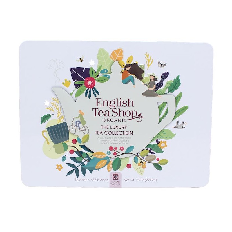 Une sélection de nos meilleurs thés et infusions biologiques dans un superbe coffret métallique éco-conçu.Un assortiment de 3 grands classiques et de 3 Mélanges uniques pour vous accompagner dans de délicieux moments de partage.L’habillage intérieur de ce coffret et les sachets sans agrafes sont biodégradables. La boîte métallique est réutilisable et les enveloppes individuelles sont recyclables.Avec sa communauté´ de plus de 2000 petits producteurs indépendants English Tea Shop fait la promesse d’une production maitrisée et d’ingrédients biologiques de qualité´ exceptionnelle.