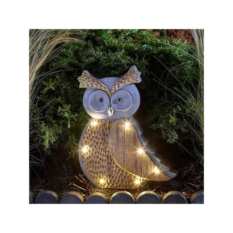 Déco solaire Hibou pierre/bois SMART SOLAR