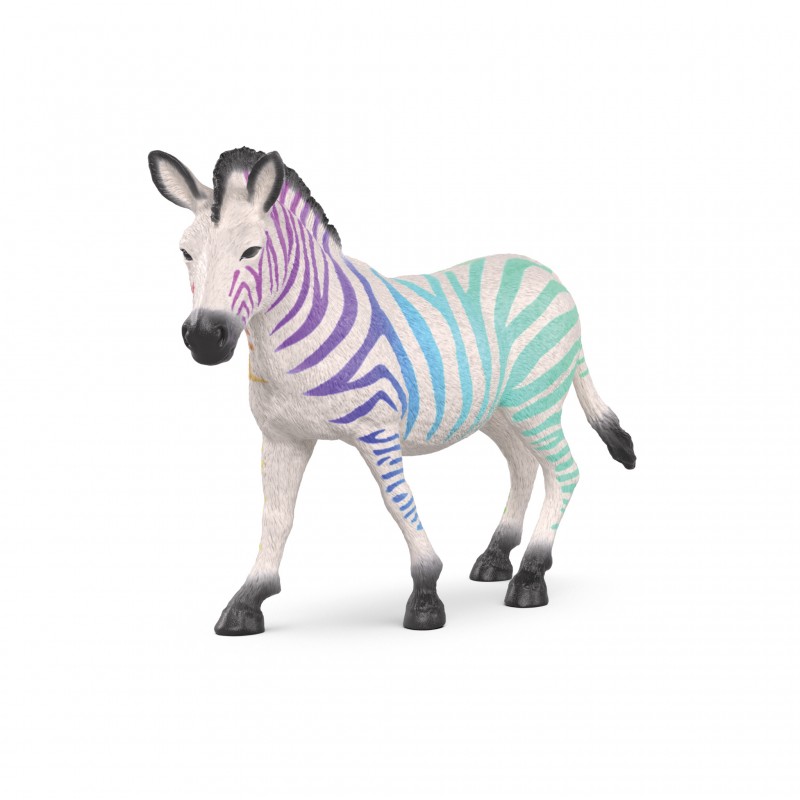 Depuis 90 ans, les figurines de haute qualité de schleich® font battre le cœur des petits et des plus grands. Le zèbre en édition 90e anniversaire se présente désormais dans un look anniversaire très particulier. Cet habitant de la savane se présente avec une crinière courte et droite, qui s’étire comme un peigne sur sa nuque. Son pelage blanc présente des rayures aux couleurs de l’arc-en-ciel. Cette figurine est strictement limitée et uniquement disponible pendant une courte période ! Cette édition limitée est donc une pièce de collection exclusive pour tous les fans des figurines exclusives de schleich®.