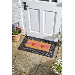 Décoir Mini Paillasson cœurs La fibre de coco naturelle durable élimine la boue et la saleté des chaussures et des bottes. Peut être utilisé avec un cadre en caoutchouc élégant et durable Support en PVC antidérapant Facile à nettoyer - il suffit de le brosser lorsqu'il est sec Convient à un usage intérieur et extérieur 53x23cm