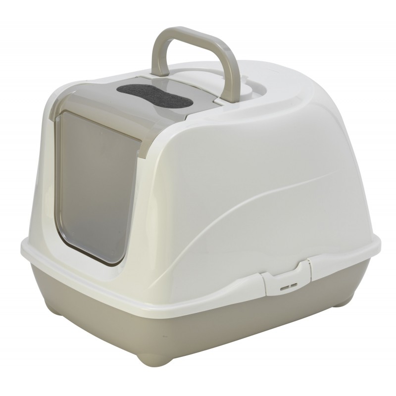 Dimensions : Longueur 57 cm x largeur 45 cm x hauteur 42 cm Maison de toilette grande taille XXL pour chat à forte corpulence ou multi chats. Large ouverture basculante qui permet de nettoyer les agglomérats avec la pelle sans enlever la partie haute du bac. Fourni avec porte d'accès amovible, pelle et filtre charbon. 3 clips en plastique : 2 en latéral et 1 à l'arrière. Son large espace intérieur permet à votre chat de s'y déplacer plus aisément. Convient aux chats de + de 7 kgs ou en utilisation multi chats. -