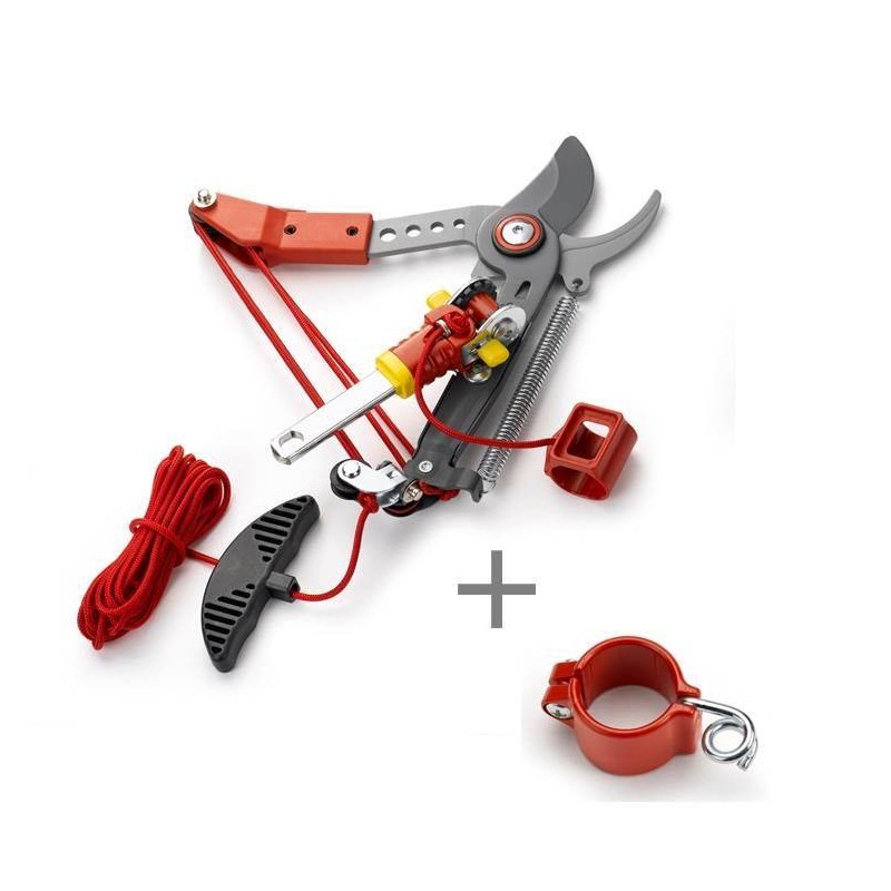 Cet échenilloir à coupe franche fait partie de la gamme d'outils interchangeables MULTI-STAR. Coupez facilement les branches de vos arbres ou arbustes. grâce au système de réduction d'efforts et à sa tête de coupe orientable à 180°. Très robuste et pratique. il vous assure une coupe nette et précise. jusqu'à 4 m de hauteur. Ces lames en acier sont antiadhésives. L’échenilloir est équipé d'un manchon de sécurité et d’un guide-corde. Les manches ergonomiques offrent une posture de travail idéale. Manches conseillés : ZMT1 - ZMT2. Accessoire complémentaire : enrouleur de corde ZSM. Diamètre de coupe : 36 mm.